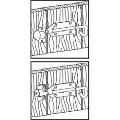 Barrel bolt for external doors and gates. Traditional bolts are difficult to align and even perfectly aligned bolts move over time. AjustLock solves these problems with a self-adjusting bolt loop. Even with slightly lowered or warped doors and gates, the bolt still fits on the bolt loop.