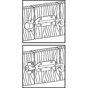 Heavy duty pad bolt for external doors and gates. Traditional bolts are difficult to align and even perfectly aligned bolts move over time. AjustLock solves these problems with a self-adjusting bolt loop. Even with slightly lowered or warped doors and gates, the bolt still fits on the bolt loop. Reinforced plate. Lockable with padlock.